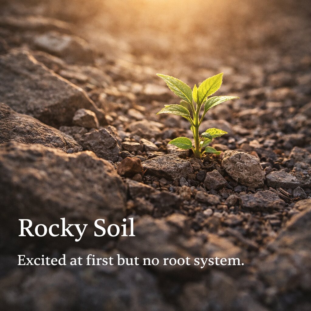 Jesus teaches that the seed is the same — but the condition of the soil determines the harvest.